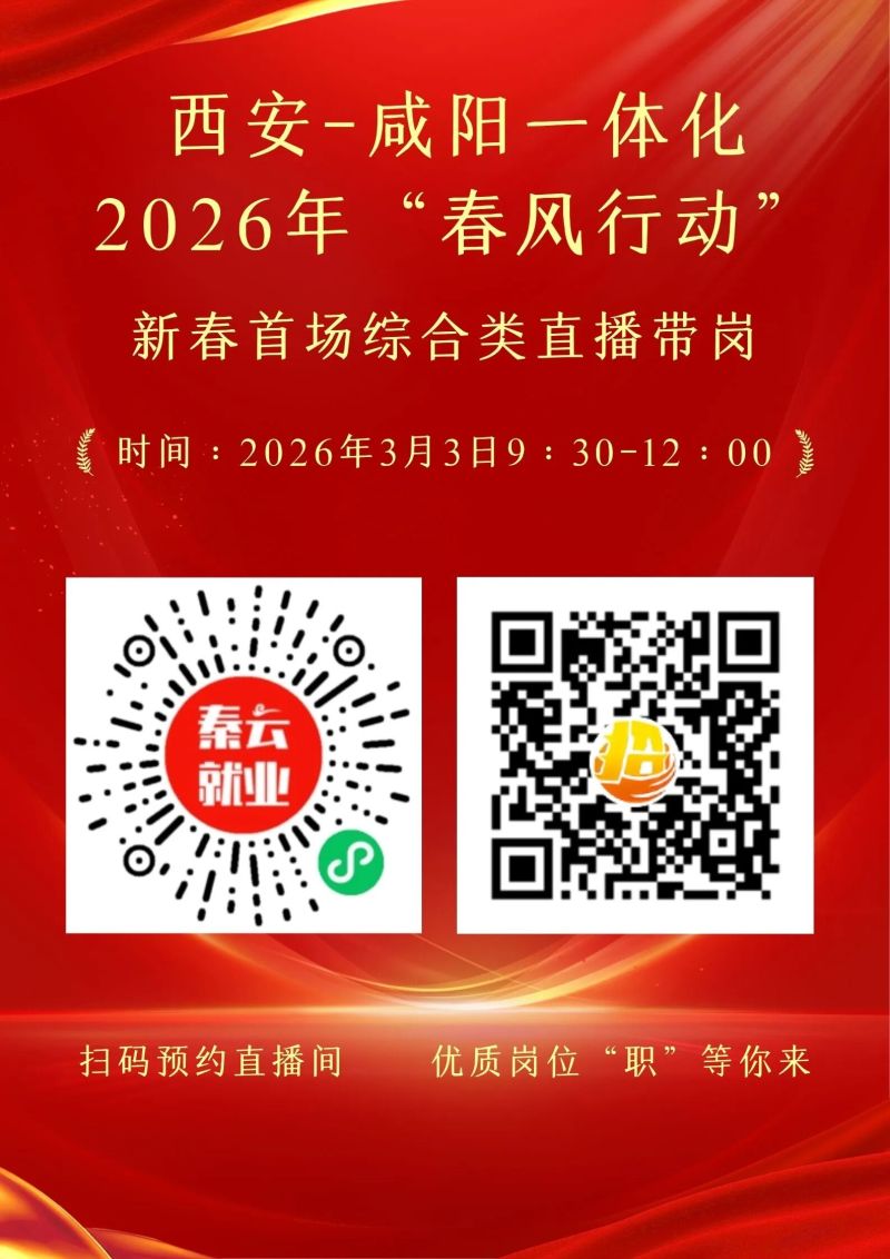 为深入推进西安-咸阳就业服务一体化发展,3月3日上午9时,西安-咸阳一体化2026年“春风行动”大型招聘会暨产业人才供需对接活动将在秦创原人才大市场举行。