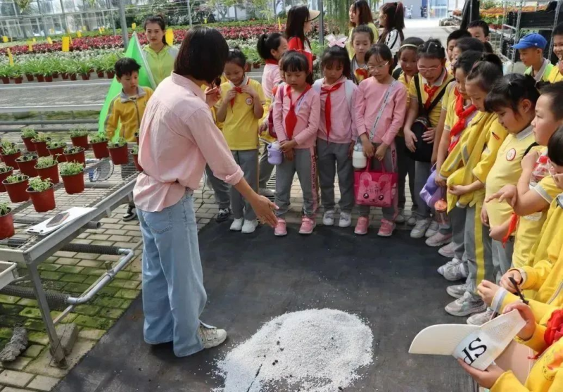 西咸新区泾河第三学校以“花”为主题,开展学科融合主题校本研修活动,组织学生前往泾河智慧农业园进行“花”课程融合实践活动。在花卉蔬菜温室里,孩子们见识到了与以往截然不同的蔬菜种植方法,也发现了许多课堂中的知识被运用于现实。
