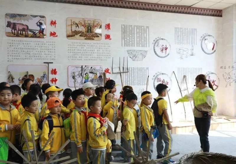 孩子们走进农耕器械展示馆,认识了犁、耙、镰刀、铲子等传统农具,并以此为载体追溯农耕文化。通过了解祖先的农耕智慧,孩子们深刻意识到保护和传承农耕文化、弘扬农耕精神的重要性。