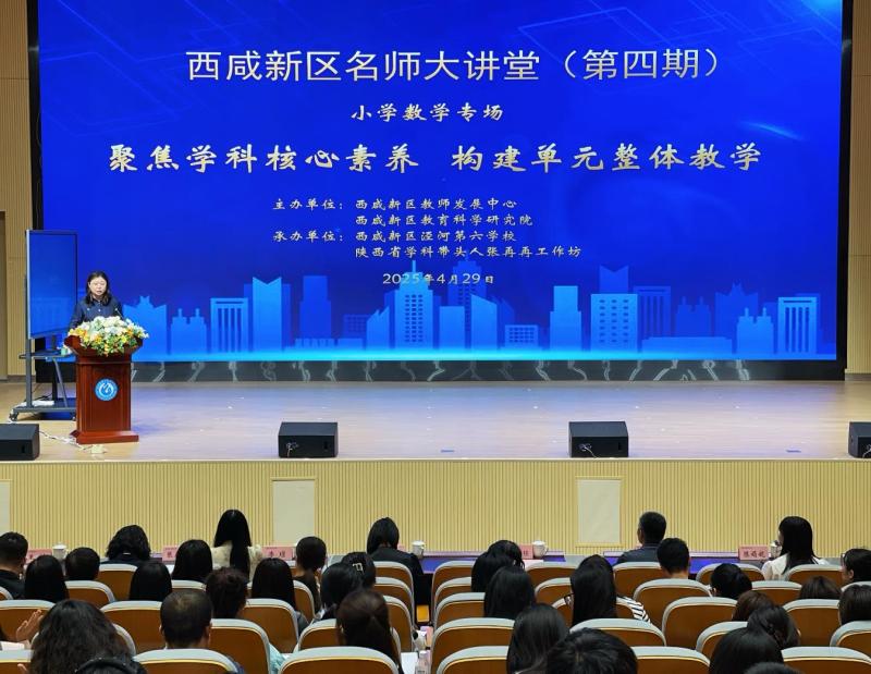 为深入落实新课程标准,提升小学数学教师教学水平,4月29日,西咸新区名师大讲堂(第四期)“聚焦学科核心素养 构建单元整体教学”小学数学专题培训暨教学研讨活动在西咸新区泾河第六学校顺利举行。此次活动由西咸新区教师发展中心、西咸新区教科院主办,泾河第六学校承办,新区200余名小学数学教师参与。