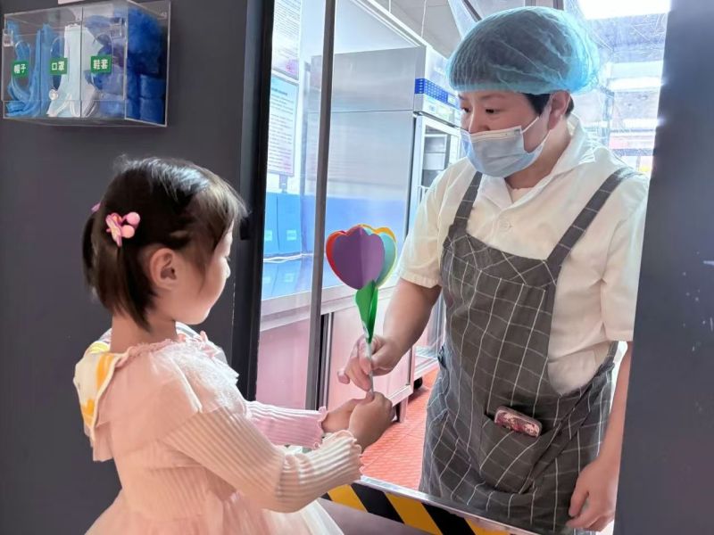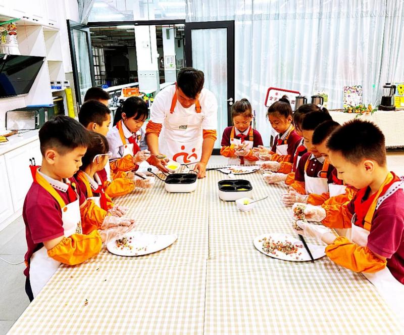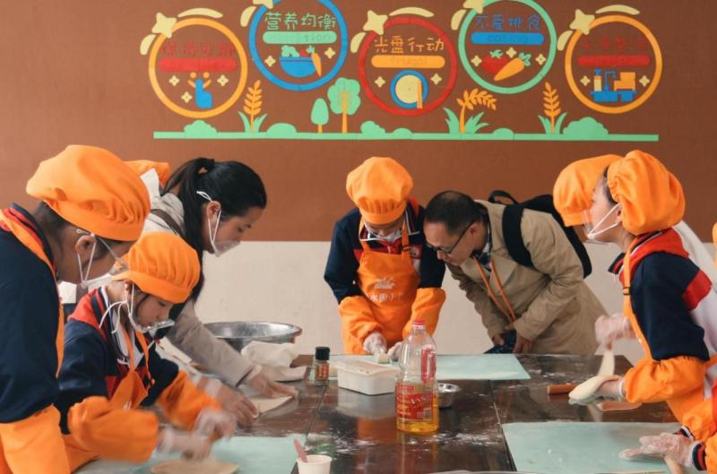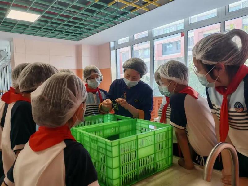 活动期间,与会人员还参观了劳动部室,并进行了“家宝漂流铺”“手工艺人坊”“美食街”等校园劳动沉浸式体验。