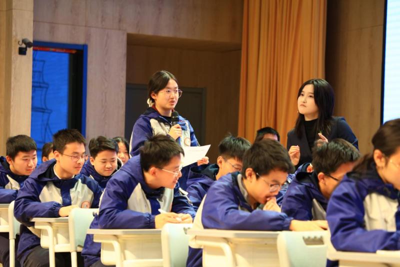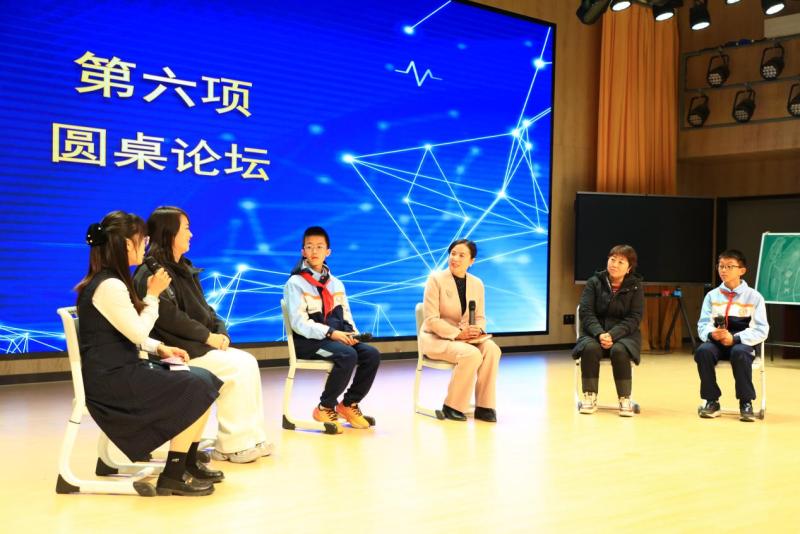 刘玲玲点评授课,肯定创新的同时提出建议:一是深化分层教学设计,针对不同需求学生设置差异化任务;二是强化课后延伸,设计实践任务并联动家校形成育人合力。“圆桌会谈”环节围绕“打开沟通之锁”,心理教师、专家与学生及家长代表深度对话,探索有效沟通路径。