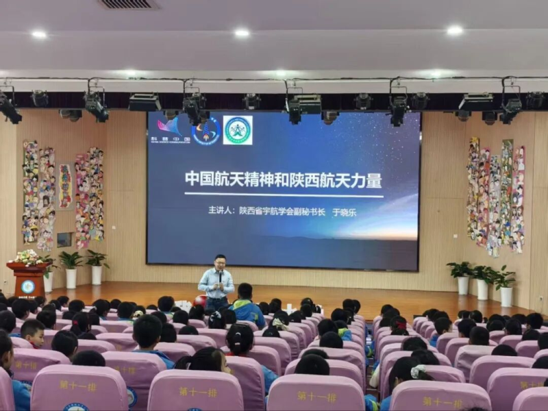 航天主题环节,讲师以“星辰大海逐梦行”为主题,聚焦陕西航天力量,介绍火箭核心部件研发等重要成果,激发同学们树立“科技报国”的远大志向。