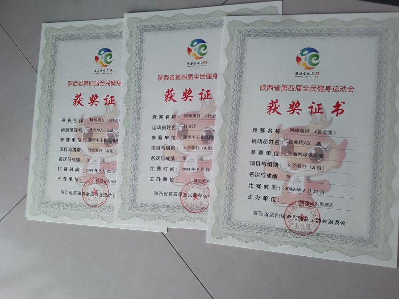 7月23日,陕西省第四届全民健身运动会网球比赛(社会组)在宝鸡高新区金徽网球馆落幕。来自全省各市(区)的13支代表队、120余人在(A组)混合双打、男子单打、女子单打、女子双打、男子双打,(B组)女子双打、男子双打、混合双打八个组别中展开同场竞技。经过4天232场的激烈角逐,西咸新区教育体育局的杜亚玲同志荣获A组单打冠军、女子双打亚军、混合双打亚军。