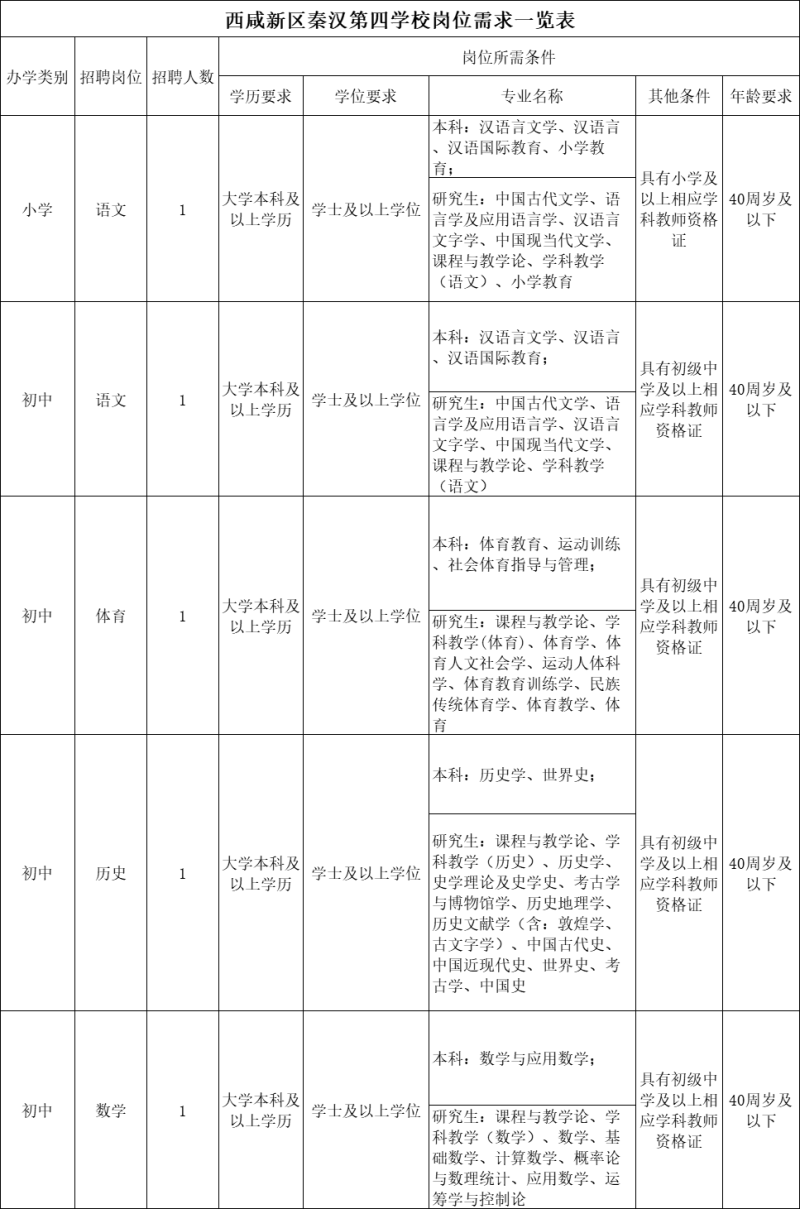 西咸新区这四所学校公开招聘