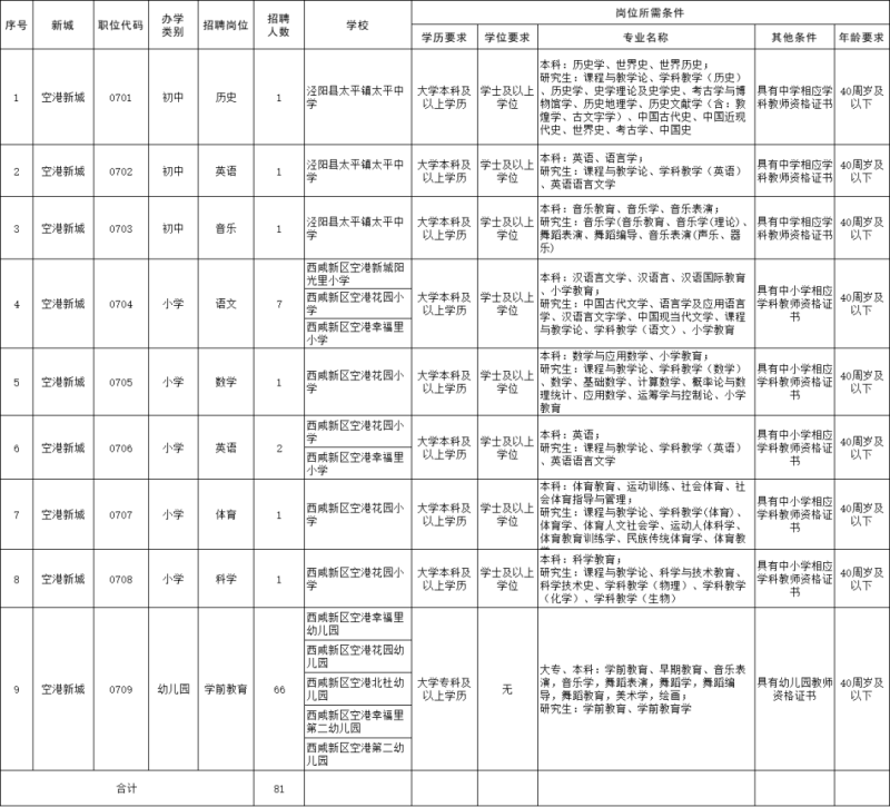 西咸新区公办中小学(含幼儿园)公开招聘639人
