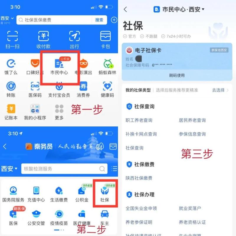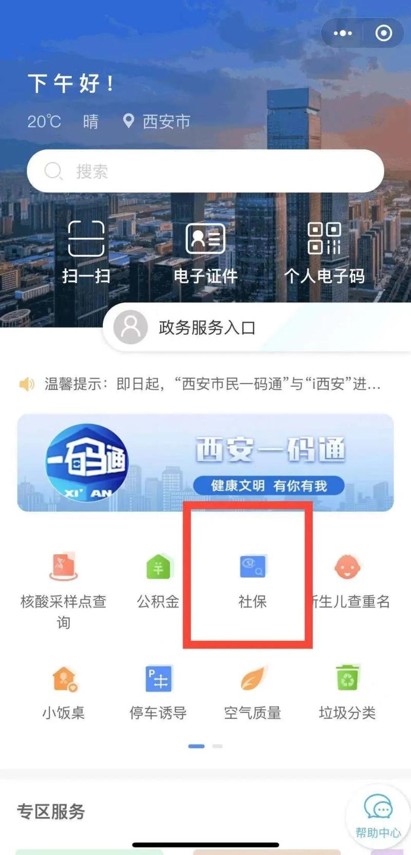 (四)通过“西安市民一码通”首页“社保”查询领取;