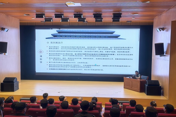 专业讲师现场详细解读了消防法律法规中关于单位主体责任和岗位职责的要求,明确管理人员和员工的法定责任,帮助参与人员筑牢安全红线意识和底线思维。随后,结合陕历博(秦汉馆)的建筑布局、功能分区、游客流线及日常运营情况,系统分析了景区内潜在火灾风险点,如电气线路敷设、用火用电管理、游客违规吸烟等,引导参训人员练就日常隐患排查工作中的“火眼金睛”,通过剖析真实文物古建火灾案例,使应急处置知识更加生动具体、入脑入心。