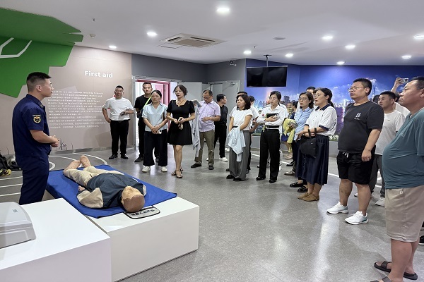 培训结束后,参训人员深入消防营区沉浸式学习。消防指战员详细讲解消防车辆、破拆工具等器材功能,指导体验重型防护服穿戴;在大队消防科普馆,通过互动体验装置,系统学习了火灾成因、不同场景下的逃生自救技巧、家庭常见火灾隐患识别。