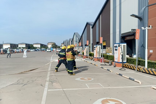 为积极应对新能源汽车快速发展带来的消防安全新挑战,全面提升充电站火灾应急处置能力,近日,西咸新区消防救援支队广德路小型站在边方村充电站开展消防应急演练。