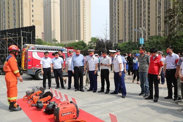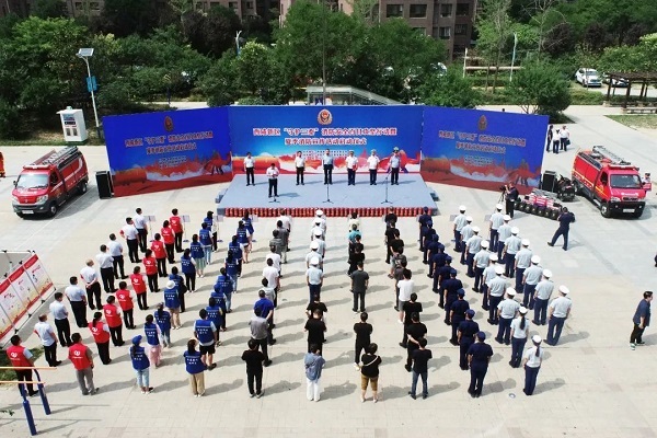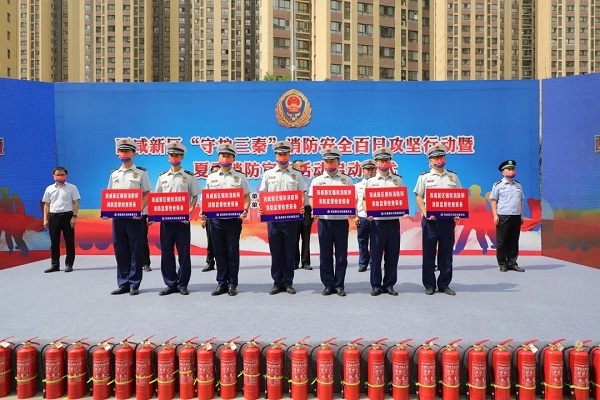 6月10日下午,西咸新区在沣东新城三桥街道后卫馨佳苑举行全区“守护三秦”消防安全百日攻坚行动暨夏季消防宣传活动启动仪式。新区应急管理局、消防救援支队、沣东新城相关部门及各镇(街道)政府(办事处)分管负责同志,各消防救援大队大队长、消防所所长、消防重点单位及消防志愿者、网格员代表共120余人参加仪式,新区消安委副主任、消防救援支队支队长贺小宇主持仪式。