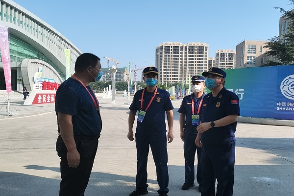 为确保第十四届全国运动会赛事场馆消防安全,高标准落实赛事场馆火灾防控措施,贯彻落实总队“9.4”十四运安保工作紧急会议精神。9月11日,省消防总队副总队长王强带领“十四运”安保督导组莅临西咸消防支队实地督导,检查涉赛场馆消防安保及防火巡查工作开展情况,支队长高国顺陪同检查。