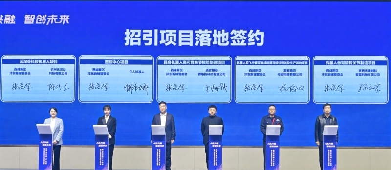 现场,沣东新城与杭州云深处科技、它人机器人等企业成功签约五大重点项目,包括云深处科技机器人项目、智研中心项目、具身机器人高可靠关节模组制造项目、机器人及飞行器谐波减速器及模组研发及生产基地项目、机器人悬臂旋转关节制造项目,覆盖机器人整机研发、核心部件制造等关键领域。