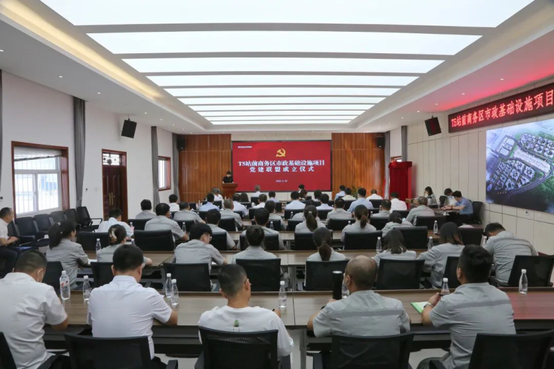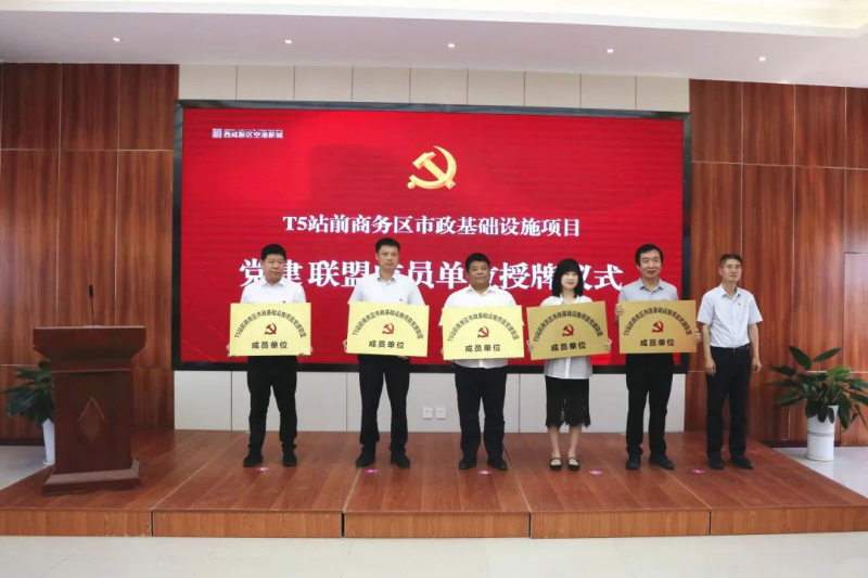 T5站前商务区是陕西、大西安对外开放的空中新门户和新窗口。当前,西安咸阳国际机场三期扩建工程建设正酣,T5站前商务区市政基础设施项目是为三期扩建工程中T5航站楼提供配套服务、为T5站前商务区发展提供基础保障的关键性市政建设项目,也是全省、全市、新区、新城四级重点工程。为广泛凝聚T5站前商务区市政项目各参建单位合力,以围绕项目抓党建,抓好党建促发展为目标,将党建与项目建设高度融合、一体推进,把党建优势转化为推进项目高质量建设的强大红色动力,空港新城T5站前管办党支部发起成立T5站前商务区市政基础设施项目党建联盟。