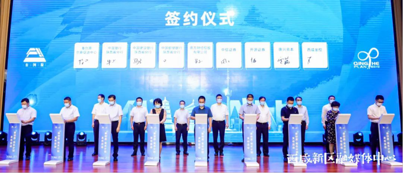 西安市副市长孟浩、西咸新区管委会主任姜建春、银保监会陕西监管局副局长舒晓鸿、中国证监会陕西监管局副局长李国强、陕西省科技厅副厅长王军、陕西省地方金融监督管理局副局长李嘉辉、西安市科学技术局局长李志军出席并见证签约,西咸新区管委会副主任陈辉主持会议。