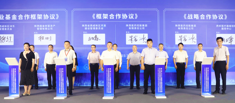 活动现场,西咸新区管委会与陕西医药控股集团有限责任公司、西咸新区沣东新城管委会与陕西国金财富资产管理有限公司、陕西医药控股集团有限责任公司与西安医疗器械创新服务中心分别签署《合作协议》,通过一个个“含新量”高、“含金量”足的项目,助力西咸新区打造我国医疗器械产业西部发展高地。