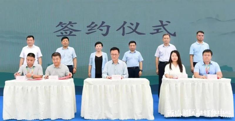 陕西省农业农村厅办公室主任刘守峰,西安市农业农村局局长裴靖瑜,西安市乡村振兴局一级调研员杜广民,西咸新区管委会副主任张渭,西咸新区基层工作部部长关强,西咸集团副总经理许寿琨出席活动并见证签约。