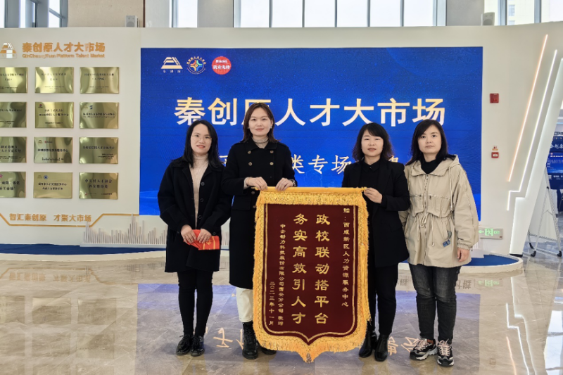 11月9日上午,西咸新区人力资源服务中心在秦创原人才大市场收到了中企动力科技股份有限公司西安分公司送来锦旗。该公司总经理孙芳女士表示:“政校联动搭平台 务实高效引人才”就是我们对秦创原人才大市场对助力企业精准、高效招揽人才工作真心的表达。