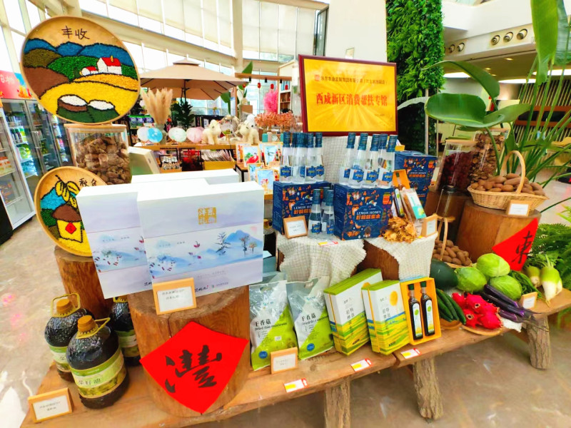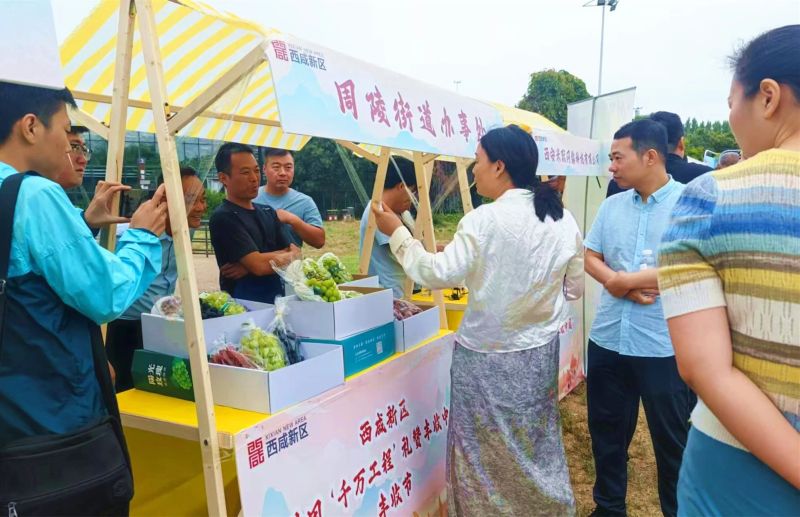 活动现场还特别设置了农特产品展示区,新区农业龙头企业和各镇街近30家合作社、涉农企业,带着近百种特色农特产品进行集中展示。周陵街道的葡萄、永乐镇的板栗红薯、大王街道的香醋、高桥街道石头馍,以及水果、蔬菜、蜂蜜、酒水、粮油等农副产品琳琅满目,这个特别的“集市”吸引了园内参观群众的驻足关注。