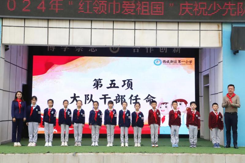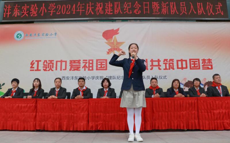 在沣东第一小学新队员入队仪式上,124名新队员精神抖擞,迎接这一光荣时刻。当红领巾在胸前飘扬,新队员们庄严地敬上了自己人生中的第一个少先队队礼,并在大队长的带领下,嘹亮地唱起队歌,庄严宣誓。与会领导嘉宾向新成立中队授旗和中队辅导员颁发聘书。