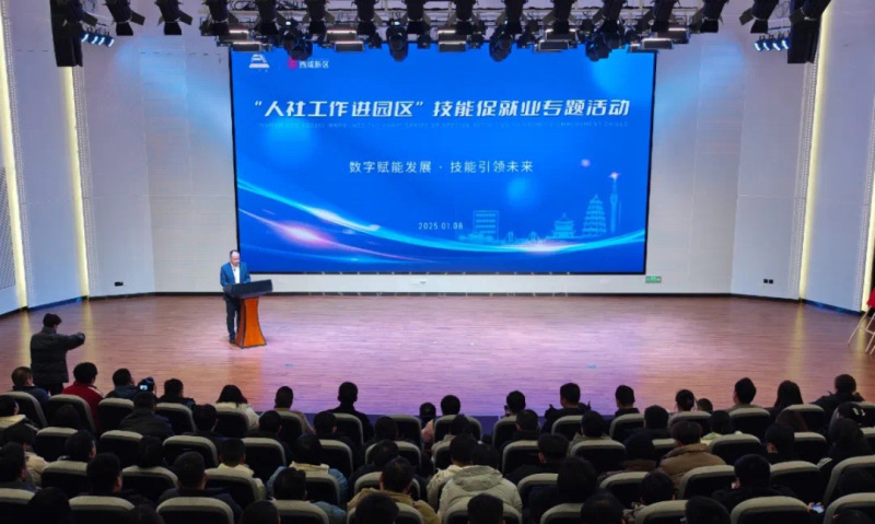 1月8日,西安市人社局与西咸新区社会事业服务局共同走进西咸国际文教园文创小镇,举办“人社工作进园区”技能促就业专题活动。