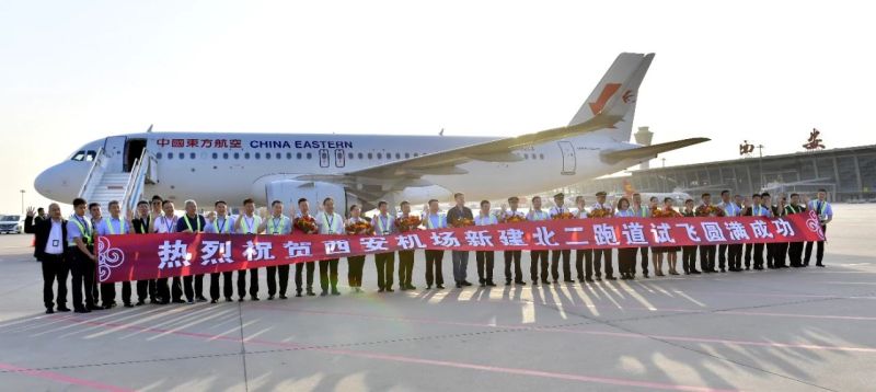 5月15日05:10,一架中国东方航空公司空客A320neo型客机从西安咸阳国际机场三期扩建工程新建北二跑道起飞,1小时24分后飞机平稳降落,标志着新建北二跑道试飞工作取得圆满成功。