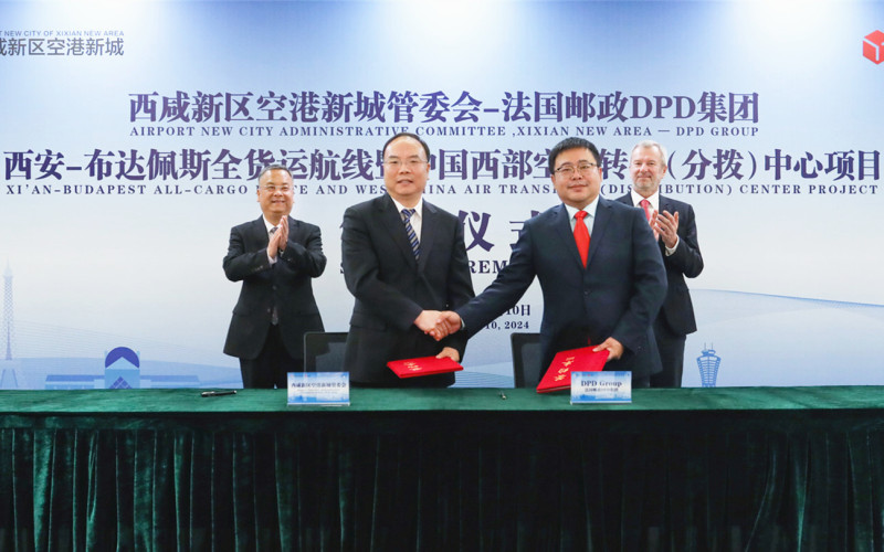 4月,空港新城与法国邮政DPD集团签署战略合作协议,建设中国西部空运转运(分拨)中心,主要开展国际快件、跨境电商进出口业务和国际航班交易结算、大宗贸易等业务。这是法国邮政在我国西部地区建立的首个空运转运(分拨)中心。