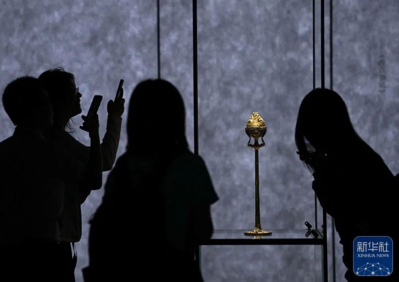 | 2024年5月18日,在位于西咸新区的陕西历史博物馆秦汉馆,观众观看“技与美”专题陈列上展出的西汉鎏金银竹节铜熏炉。新华社记者 李一博 摄 |
