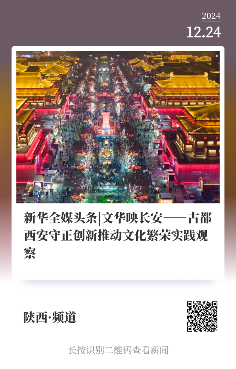 2024年12月24日,新华社发布《文华映长安——古都西安守正创新推动文化繁荣实践观察》: