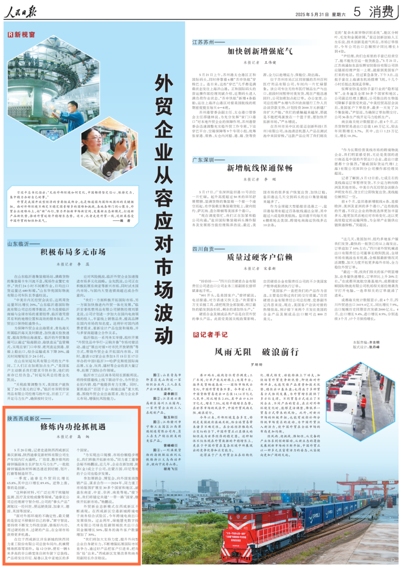 今天,人民日报刊发《外贸企业从容应对市场波动》关注西咸新区发挥创新优势,加速推进各类科技企业“出海”,不断提升国际市场竞争力,节选如下。