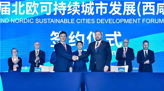 参赞沙龙环节结束后,西咸新区与北欧绿色建筑联盟、瑞典恩华特集团分别就绿色建筑设计、城市垃圾收集处理等签署战略合作协议,战略合作将为西咸新区高质量城市发展提供新动力。