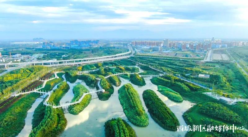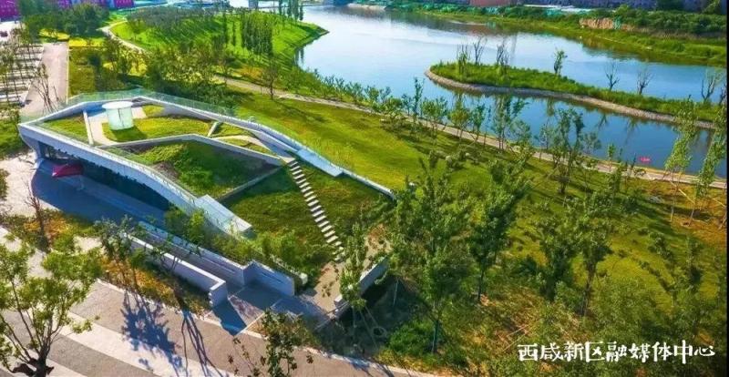 渭水河畔,绿意盎然。渭河是黄河最大的支流。在渭河、沣河、泾河穿境而过的陕西省西咸新区,随坡就坡、随湾就湾的滨水生态景观带,像一条五彩绸带,蜿蜒曲折地铺设在渭河边上。位于西咸新区的中国西部科技创新港,周边1500亩的新渭沙湿地、2000多亩的涝渭湿地和5000多亩的渭滨湿地,尽显生态之美。陕西最大的孵化器和科技成果转化“特区”——秦创原创新驱动平台也落户于此。从海绵城市、地下综合管廊,到中深层无干扰供热、装配式建筑、合围式巨构等,创新城市发展方式的诸多理念在创新港这个美丽小镇集中应用,处处散发着绿色、低碳、可持续的气质。
