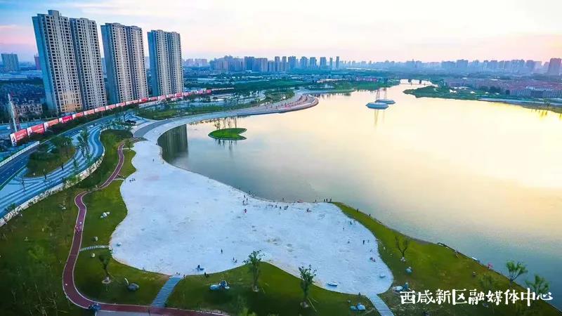 飞鸟掠过水面,碧波荡漾;岸边休闲公园里,绿道伸展。这条绿道由渭河,灞河及其支流浐河、库峪河,沣河及其支流潏河、滈河,以及秦岭环山带组成,称为“三河一山”绿道网络,是西咸新区践行全域治水理念的生动写照。沣河入渭口、伊人广场、沣河生态湿地公园等,一大批河湖综合治理亮点不断刷新城市“颜值”。据不完全统计,目前这里发现的鸟类有37种。“生态环境有没有变化,鸟儿最知道!”站在西咸新区沣河入渭口眺望远处,西咸新区管委会副主任徐军前感慨地说。
