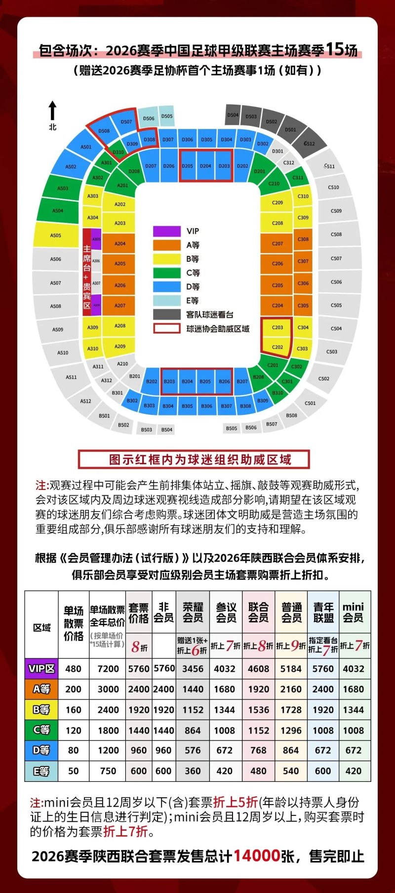 陕西联合足球俱乐部正式发布2026赛季中超联赛主场套票销售计划