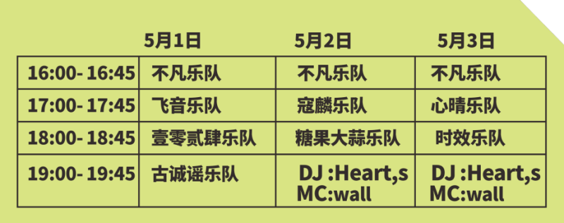 10组人气乐队将轮番登场