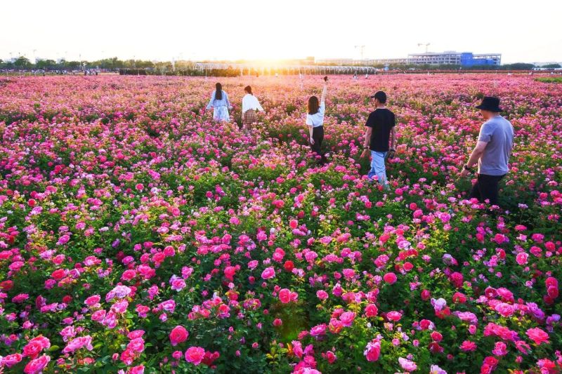 作为著名网红打卡地,云间花境目前正值月季花盛开的最佳时节,300万株月季竞相开放,花香四溢,吸引了大量游客前来观赏。