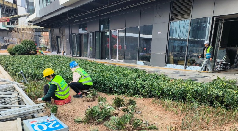 项目建设现场,100多名工人正在进行绿化及内部装修等收尾工作;截至目前,项目(一期)整体已基本完工,预计今年6月具备交付条件,项目周边主要道路也在同步加速建设,将于近日正式通车。
