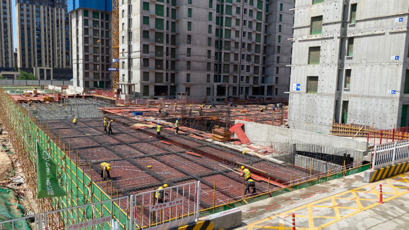 在项目施工现场,模板支设、钢筋绑扎等多个工序穿插施工快速推进,朝着项目整体交付目标全力冲刺。
