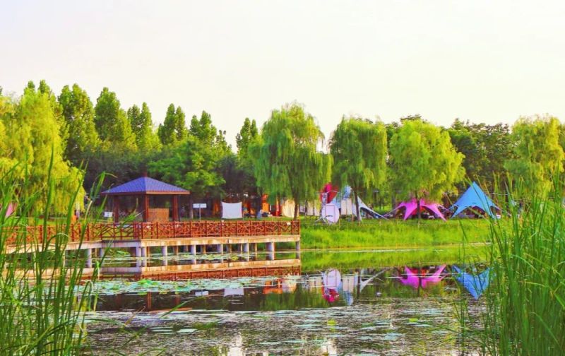西安向北跨过渭河,就到了秦汉新城渭河生态景观带。“蓝天白云,河风吹过,耳畔是虫吟鸟鸣蝉唱,这里的环境特别好,树木高大茂密,比城里要凉快得多。”正在渭河湿地公园和朋友露营休闲的王女士说,“我们经常来这里搭帐篷、弄烧烤、煮茶避暑、看渭河落日,真的很好!”