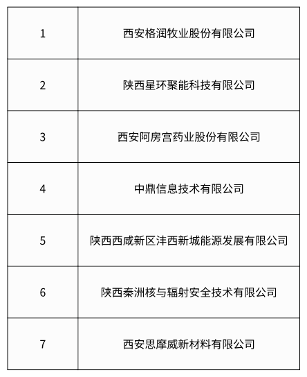 沣西新城纳入省级上市后备企业库的7家企业名单