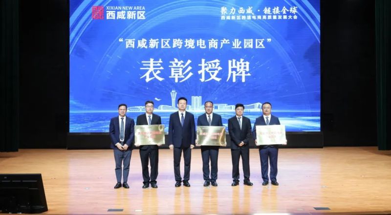空港新城区内企业陕西星空供应链管理有限公司、陕西丝路港外贸服务有限公司、陕西众维云创运营服务有限公司被授予“西咸新区跨境电商鸿雁企业”牌匾。陕西西咸空港综合保税区跨境电商产业园被授予“西咸新区跨境电商产业园区”牌匾。