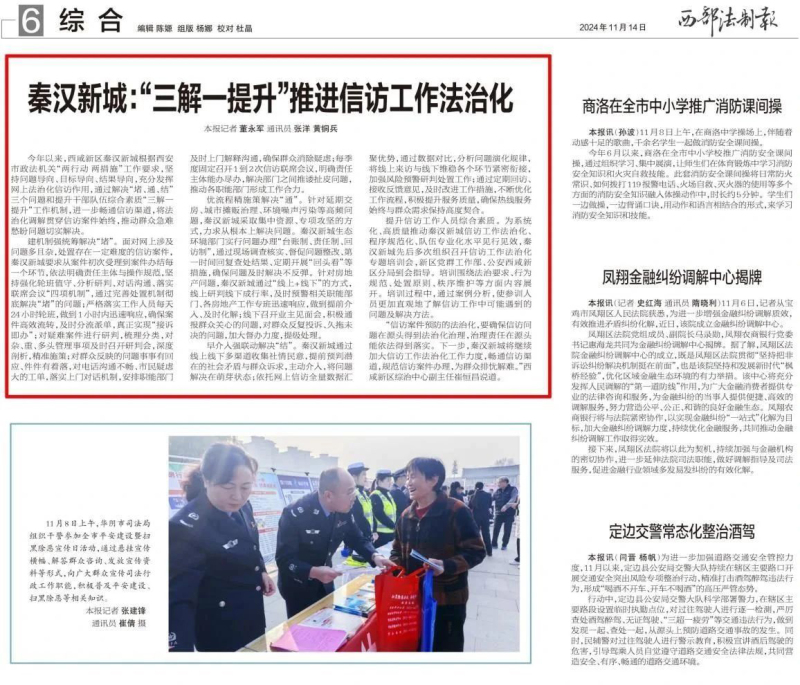 日前,《西部法制报》刊发文章,对秦汉新城“三解一提升”推进信访工作法治化进行了报道,全文如下: