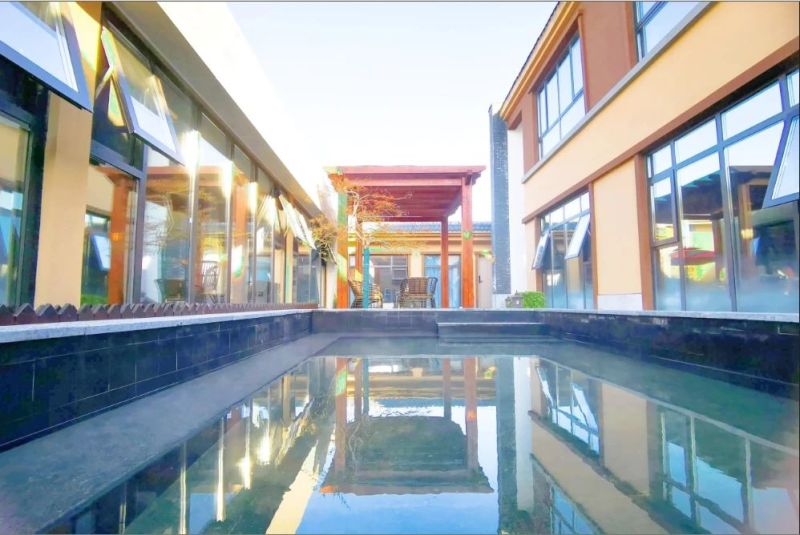 依托丰富地热资源,白庙村打造规模超百亩的温泉康养民宿群,先期试开放了8种不同主题的民宿院落,古香古色的院落,闲适幽静、景观别致,从40平方米到100多平方米,包括标准房、商务房和亲子房等房型,让你泡汤休闲两不误。