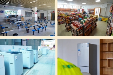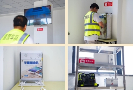 “暖心驿站”通过科学规划功能分区、优化服务动线设计,在原有餐饮和便民商店基础上,新增了恒温淋浴间、洗衣区、图书角、多功能休息区及台球、乒乓球活动区,添置了空调、电视、热水炉、微波炉、应急医药箱等设备设施,形成“冷可取暖、热可纳凉、渴可饮水、累可歇脚”的15分钟服务圈。