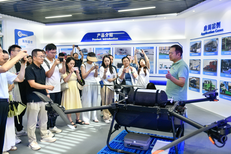 移步至盛世盈创氢能科技(陕西)有限公司,状似电动车的“氢能助力车”受到了记者们的关注。“这辆车拥有25km/h的最高时速,且在80g氢气供应下,理论续航里程可达120公里,其搭载的燃料电池系统可在零下40℃启动。”盛世盈创副总经理聂小确介绍说。现场一架氢动力无人机正在测试架上悬停,其载荷能力已突破20公斤。“这不仅是续航革命,更为应急救灾、农业巡检开辟新场景。”聂小确补充道。