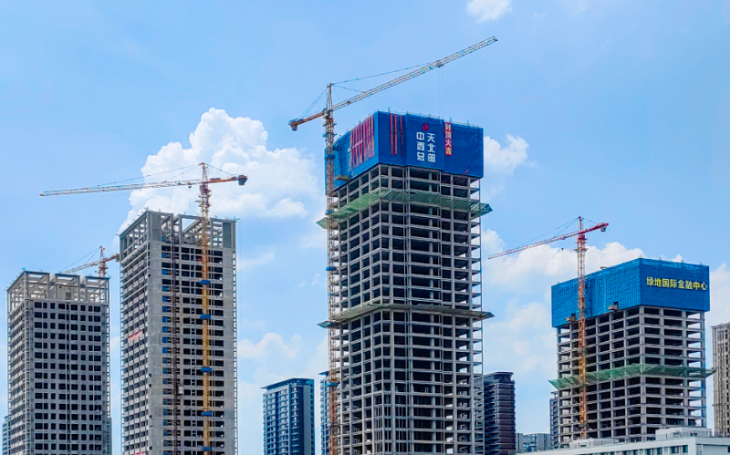 目前,A、B、C塔楼已封顶,准备开展外立面作业施工,预计2025年12月竣工。