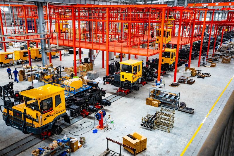 走进位于沣东新城的陕西同力重工股份有限公司的生产车间,U型组装流水线上一派繁忙,机械臂与工人协同作业,每12分钟便有一辆近4米高的非公路宽体自卸车“走”下整装线。在新能源产品车间,工人们正加紧调试甲醇混动自卸车动力系统,这是企业继纯电动、氢能车型后又一量产化创新成果,适配多种复杂工程场景。车间外,数百辆黄色自卸车在停车场整齐排列,依托“一带一路”倡议,这些产品即将发往中亚、印尼、秘鲁、刚果金等新兴经济体。