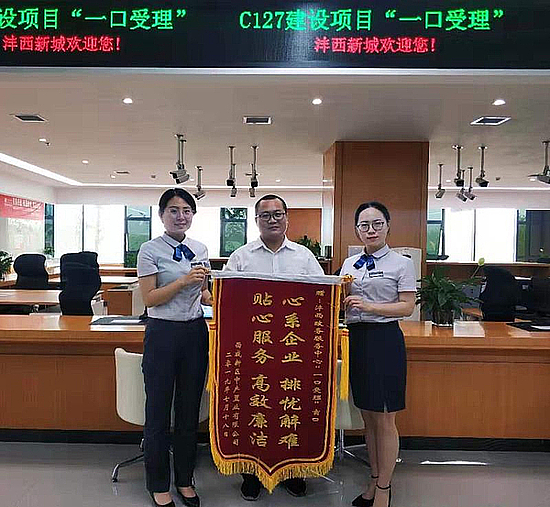 从走上岗位那一刻起,李彤就把所有的热情倾注在服务工作中,也赢得了办事企业的一致好评。今年7月,西咸新区中产置业有限公司负责人柴先生为李彤送来写有“心系企业排忧解难 贴心服务 高效廉洁”的锦旗。原来,1个多月前,中产置业公司工作人员前来大厅咨询中铁·沣河湾工程项目报建,李彤将整体报建流程为他详细讲解,耐心强调事项审查要点,临走时还再三叮咛他需要准备的申请资料清单,工作人员对她的热情服务印象深刻。后期,在办理重大项目社会稳定风险评估和建设项目备案时,企业工作人员一直不能在网上成功申请,李彤一步步耐心指导,手把手帮助,使企业最终顺利完成了稳评和建设项目备案。企业负责人表示,多亏了李彤的帮助,真正为他们减轻了负担,缩短了准备时间,使他们的项目顺利开工建设。