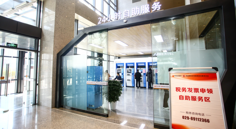 此外,针对税务发票领取、不动产查询证明、天然气缴费等高频业务和便民业务办理,政务服务(沣东)中心一层还设置有24小时自助服务大厅,方便群众随时进行自助办理。