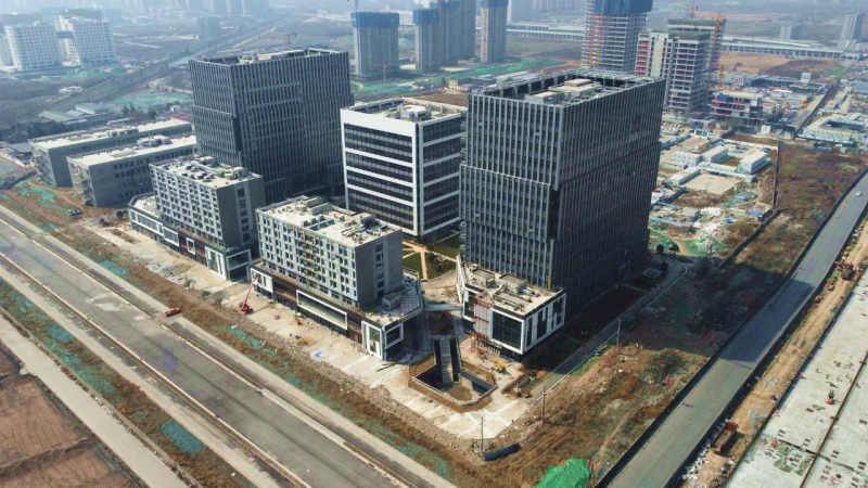 截至目前,项目一二号楼已完成主体施工,正在进行机电安装及幕墙收尾工作,三四五号楼已完成机电安装及外立面的幕墙安装,室外管线施工已完成,正在进行景观绿化施工,即将开始室内精装修施工,预计2025年建成投入使用。
